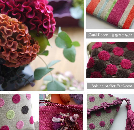 暖かさと強さと感じる赤い色。花柄を組み合わせた作品など、紹介したい画像がまだまだありますが、今回はクリスマスシーズンにちなんだものやToile de Jouy(トワル・ド・ジュイ)を中心に。
