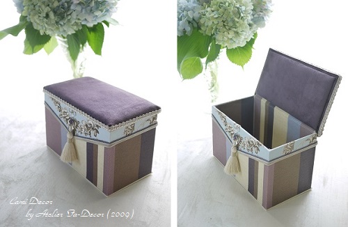 カルトナージュの筒形の箱の課題はA,B,C,D,E…と複数ある中、こちらは比較的簡単なもので、ちょっとした仕掛けがある面白い課題です。