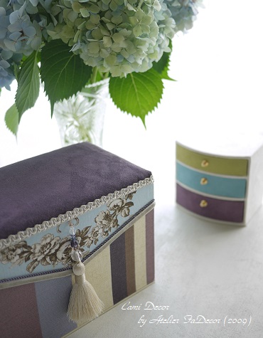 星の形の箱と苺のコサージュの丸箱。内側はまた別の機会に・・・。