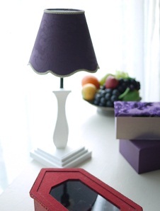ちょっとした空きスペースに置きたくて作ったシェルフ。軽くて使い心地が良いし、画像に残しておかなくちゃ・・・と、上の画像を撮影したのは2012年。棚にはカルトナージュのフレーム付の箱やバスケットなど紫色の作品を置いています。