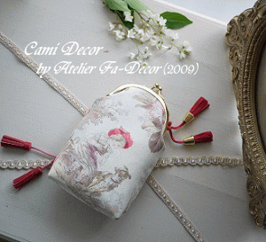 フレームのベースには少女と犬が描かれたToile de jouy(トワル・ド・ジュイ)を使っています。→「過去のレッスン作品ページの画像はこちら」
