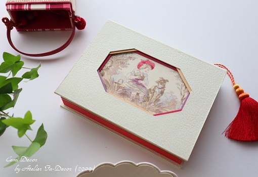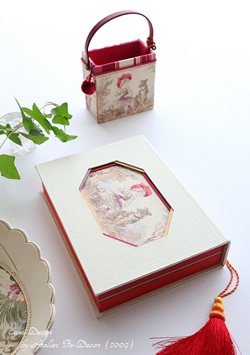 下の画像は2009年からのカルトナージュの課題「フレーム付きの箱」のサンプルの1つ。