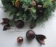 下の画像は昨年(2015年)のリース。チョコレート色のボールは2007年に教室のSさんからいただいた素敵なリースに使われていた思い出のもの。