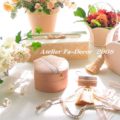大型トレイの中の「リボンワークをほどこした箱」は、もともと自分用に作ったものですが、今では定番の課題(中上級者用)となりました。
