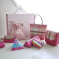 下は桜の形のカルトナージュの箱。はぎれで作った桜のつまみ細工や巻き玉を添えて撮った写真です。