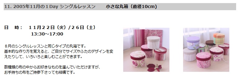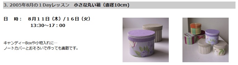 2005年8月に単発のレッスンとしてスタートした「蓋付の小さな丸箱」。