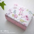 作りかけのカルトナージュの箱の手前に置かれた、手のひらにのるサイズの洋服。スモック刺繍(スモッキング刺繍)のフリル付ドレスに刺繍入りのカーディガンとビーズのバッグ、小さな革靴と靴下。教室での制作風景で、あまりに可愛らしくて撮らせていただいたもの。画像など追加していきます。