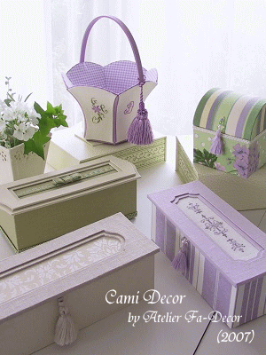2006年の終わりにサンプル制作した、オリジナルデザインの「フラワーバスケット」と「ロングボックス」。